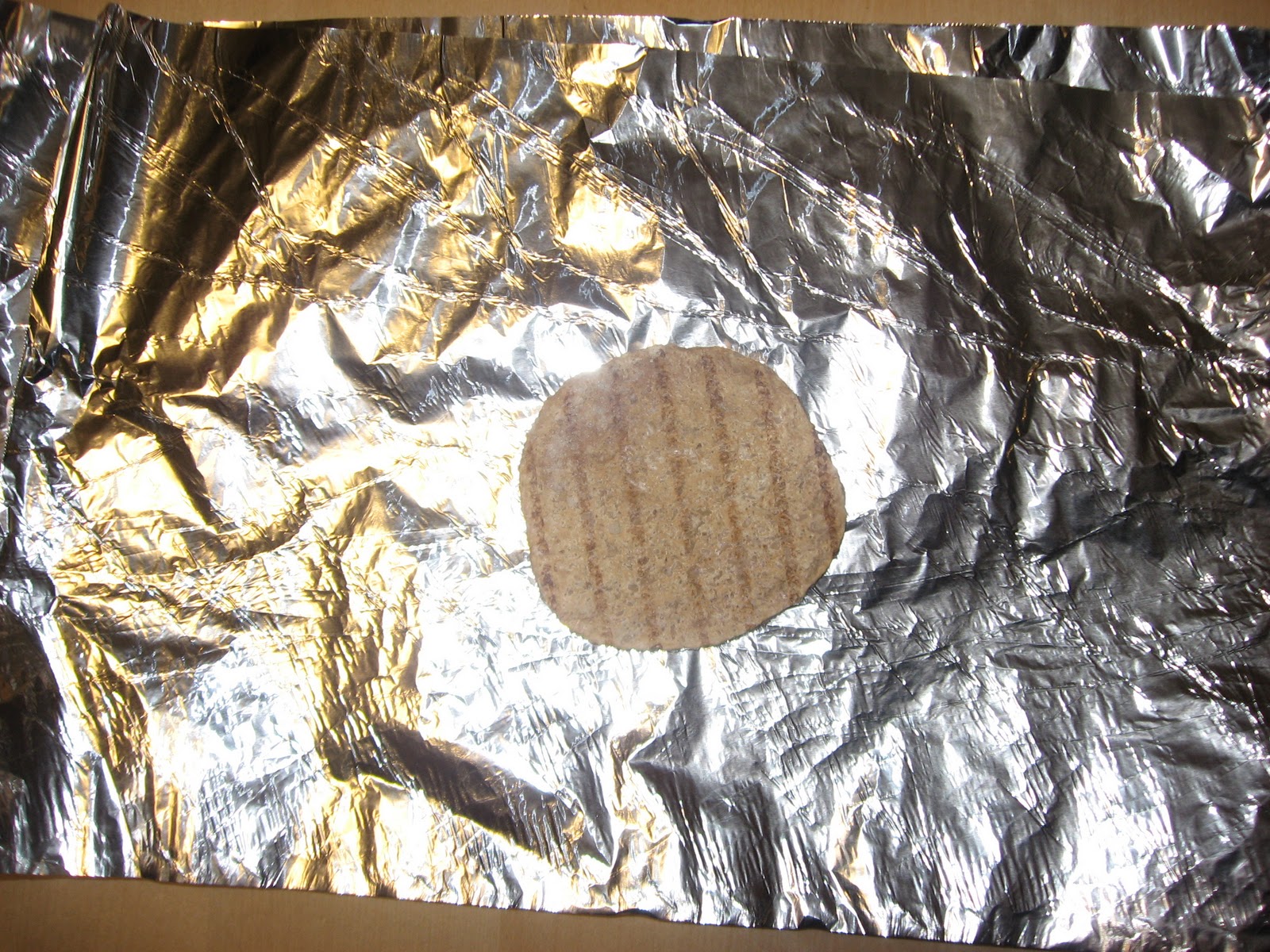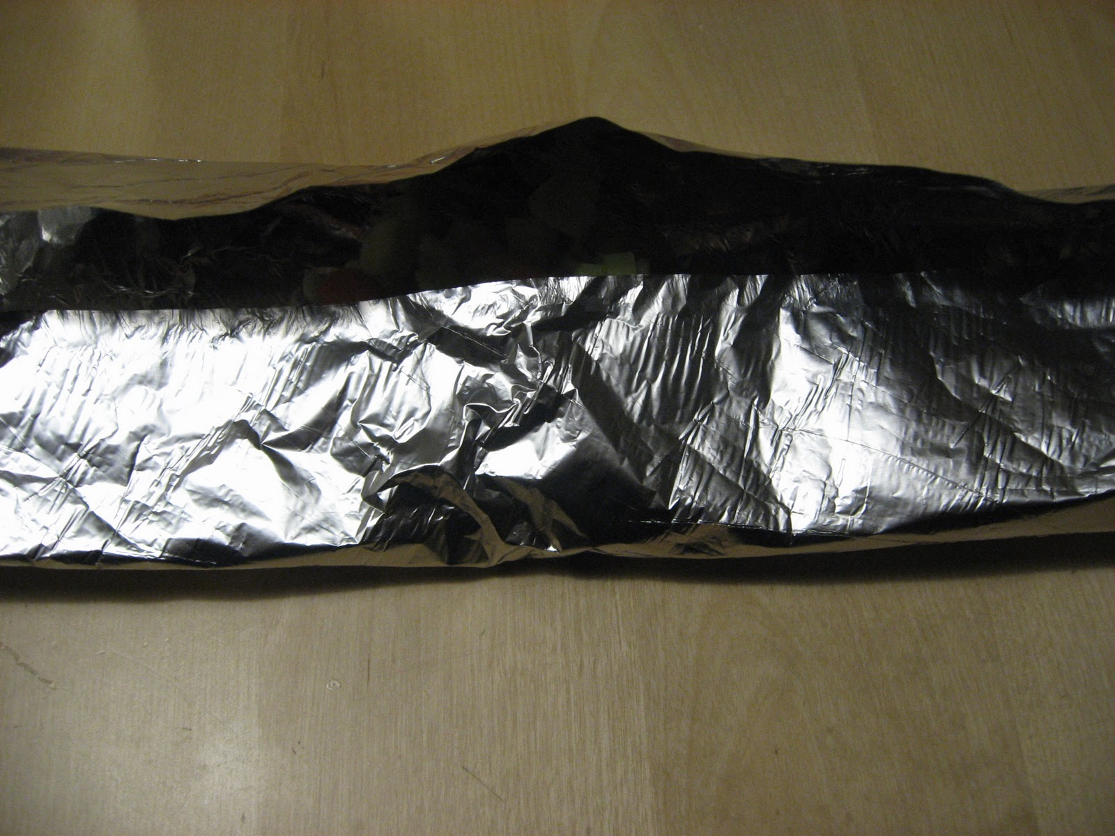 Wrap the whole thing up in the aluminium foil, wrapping carefully to overlap the edges and to not poke any holes in the foil.