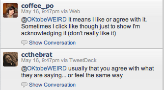 What do YOU mean when you click a “Like” on a Facebook conversation? I wanna know.